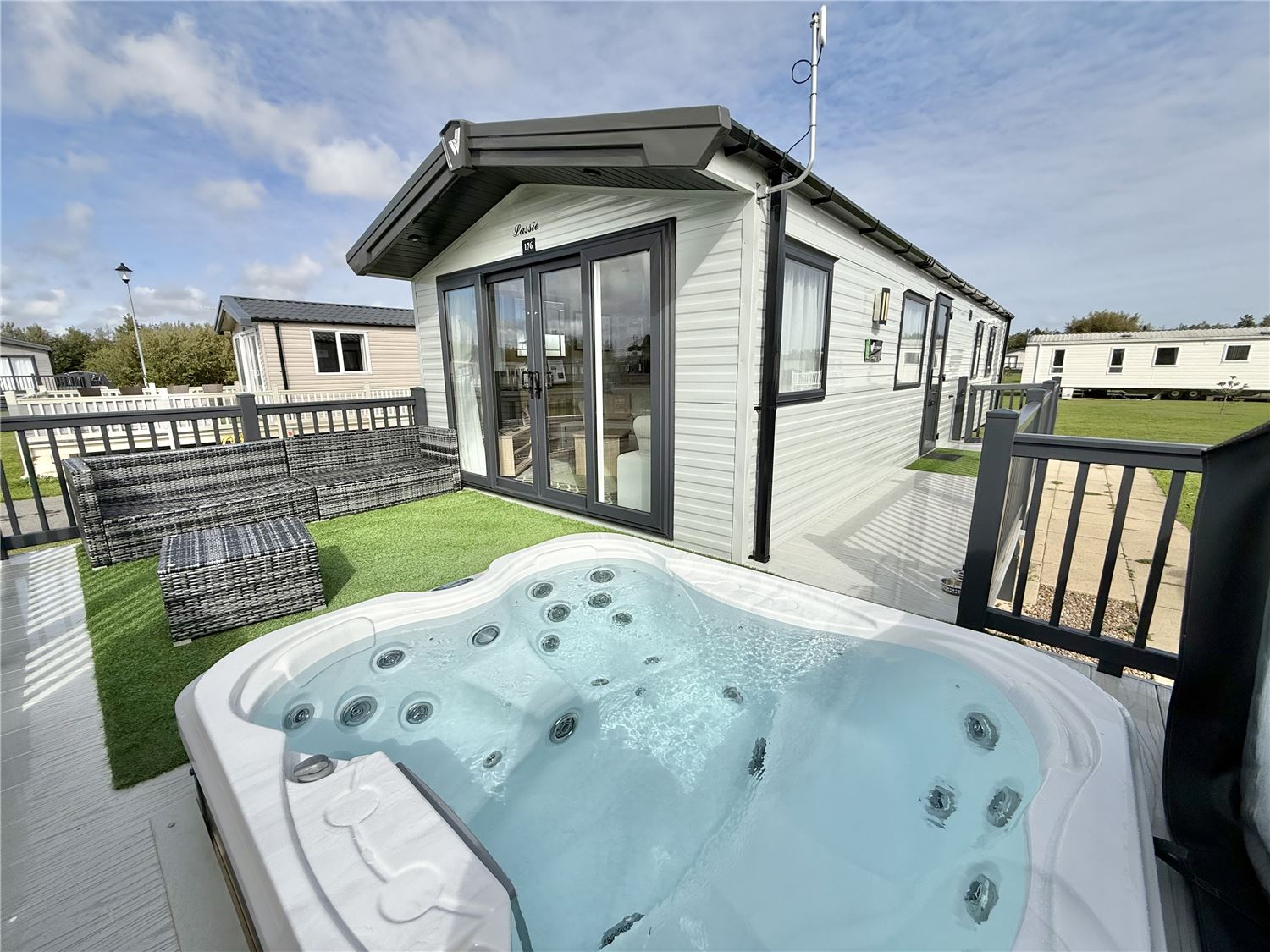 Enjoy A relaxing, comfortable stay in our 6 Berth 3 bedroom luxury caravan. It has a stunning large wrap around decking housing a sunken hot tub, a lovely patio set at the front of the caravan over looking the serine landscape of the park, perfect for alfresco dinning. The fishing lake is just behind the caravan.