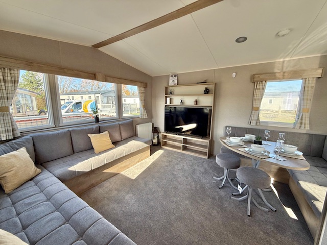Enjoy A relaxing, comfortable stay in our 8 Berth 3 bedroom caravan offering great value for money. A front decking houses a sunken hot tub and a patio area to the side of the caravan is perfect for Alfresco dining.