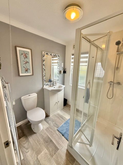 From the left entrance, you enter to a full size kitchen, with everything you could ever need, including a dishwasher, full size fridge freezer, double oven, microwave, kettle, toaster, slow cooker and air fryer. The cottage has quirky vintage style along with modern day finishing, such as the opening to the dinning room, which adds to the charm of this unique holiday home. The right entrance opens up to an area of where you can put your shoes and coats before entering the hallway which leads to each part of the holiday home.