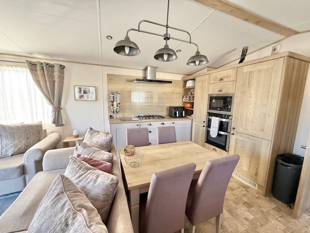 The Lodge entrance opens up, where there is plenty space for shoes and coats. Once passed the entrance you enter into the large open planned dinning/living and kitchen area. We have an extensive kitchen with everything you could ever need, including a dishwasher, washing machine, double oven, microwave, slow cooker and air fryer.