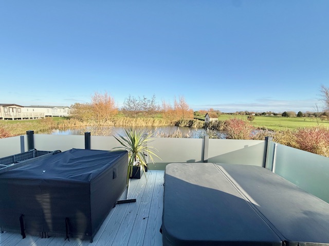 Decorated to a high modern standard with high end finishing touches, this mini lodge its perfect for those seeking the added luxury to your stay. It has a stunning wrap around decking housing a sunken hot tub, a lovely patio set perfect for alfresco dining and entertaining over looking the sites gold course and pond, a perfect sun trap!