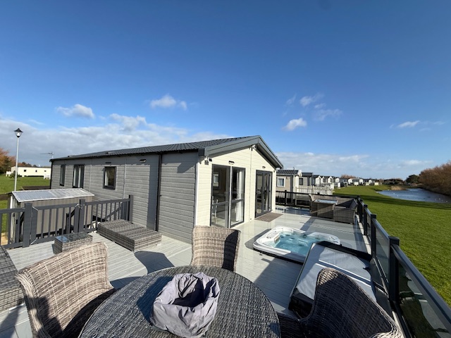 Enjoy A relaxing, luxury stay in our 6 Berth 2 bedroom Platinum lodge. It has a stunning wrap around decking housing a sunken hot tub, two lovely patio sets and sun loungers perfect for alfresco dinning. The lodge is on a quiet side of the park.